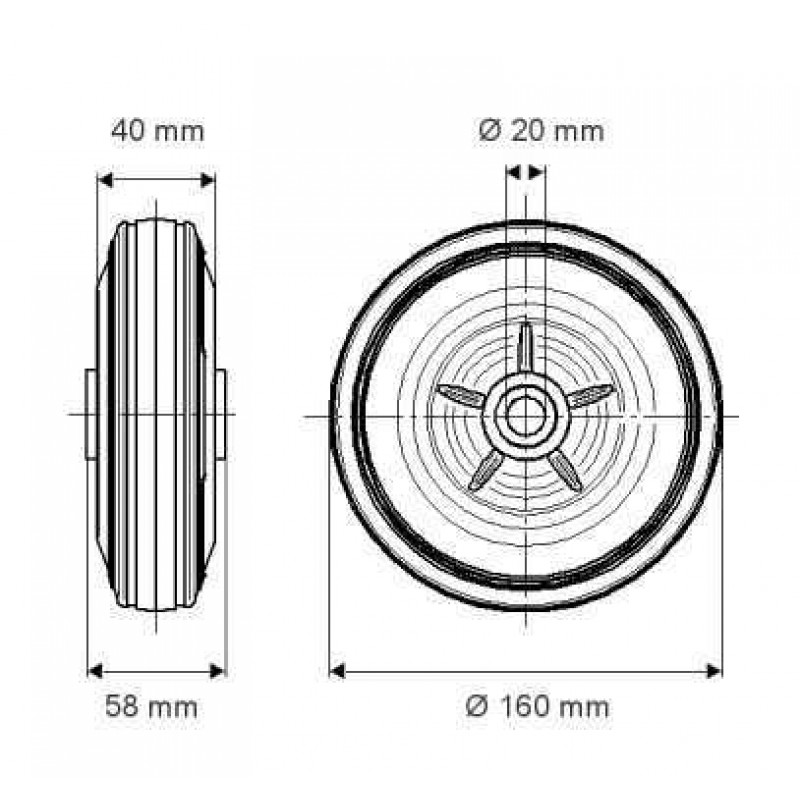 Jantă din polipropilenă, suprafaţă de rulare din cauciuc plin, negru, rulment plan (bucşă antifricţiune)