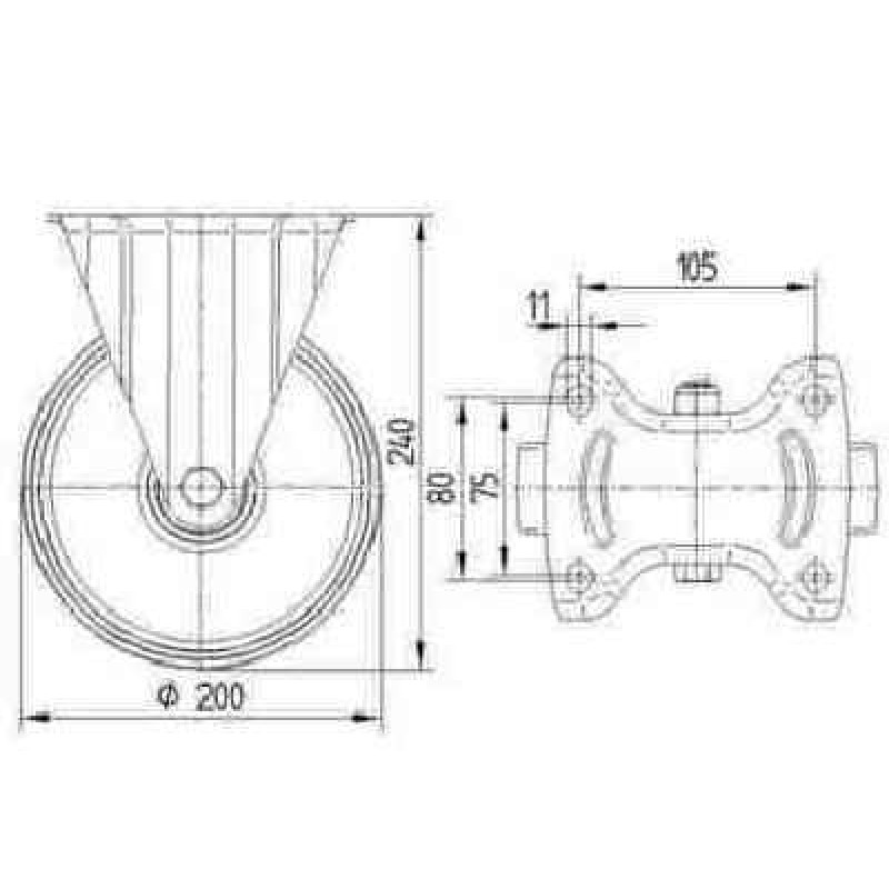 Rolă fixă, furcă din tablă din oţel, ambutisată, zincată, axul rotii cu surub si piulita, sistem de prindere tip placa.