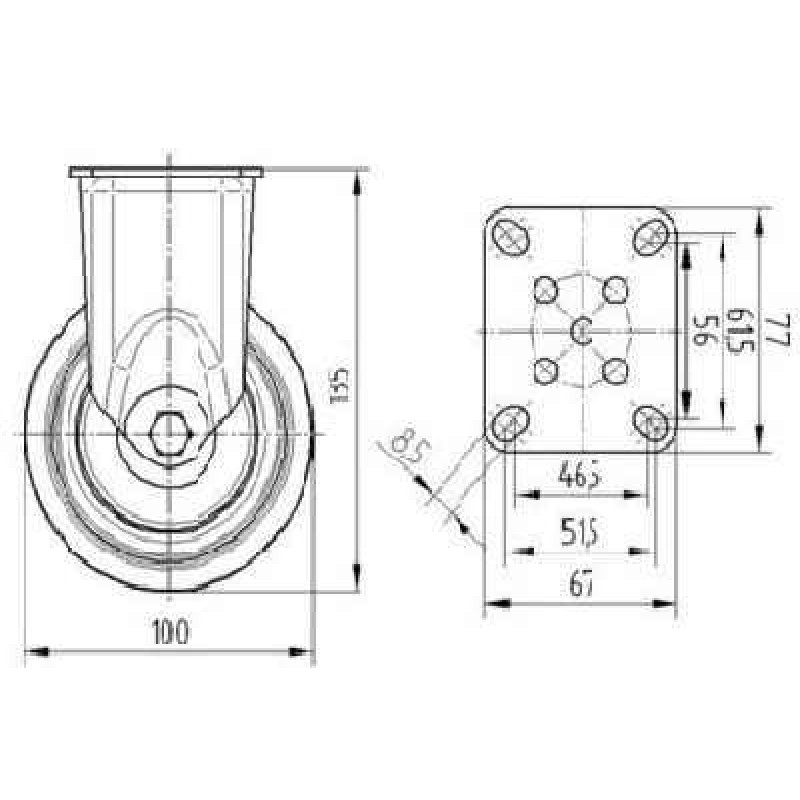 Jantă din polipropilenă, Suprafaţă de rulare: cauciuc termoplastic, rulment plan (bucşă antifricţiune).