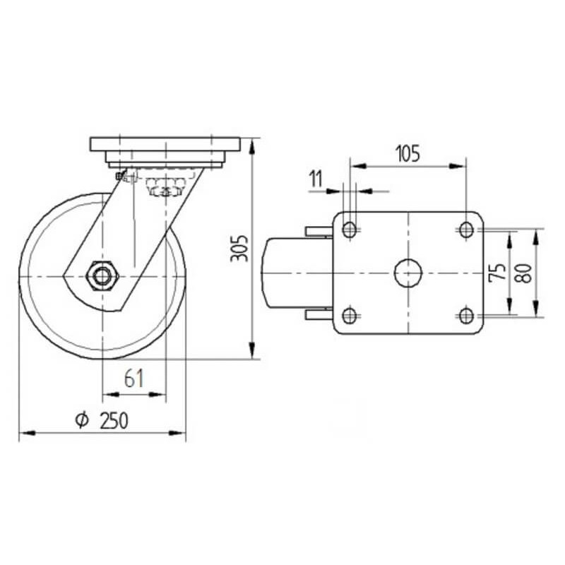 prindere tip placa. Janta din fonta, suprafata de rulare din poliuretan turnat,