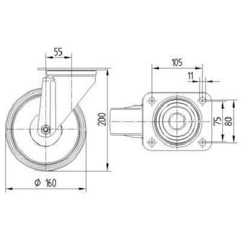Rota pivotanta de 160 mm cu sarcina dinamica de 350 kg.