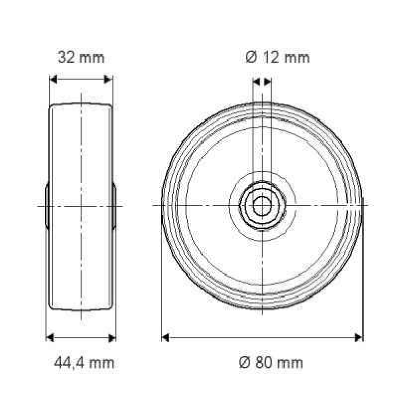 Jantă din poliamida, Suprafaţă de rulare: polipropilena, rulment cu colivie cu ace.