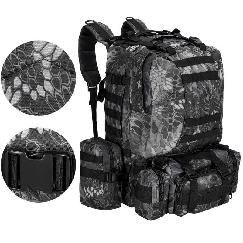 Catarama de centura reglabila: 36 - 70 cm Rucsacul nostru a fost dotat cu numeroase compartimente suplimentare, detasabile, un sistem Molle de neinlocuit, sisteme de transport reglabile, o centura pentru solduri si o serie de alte avantaje: