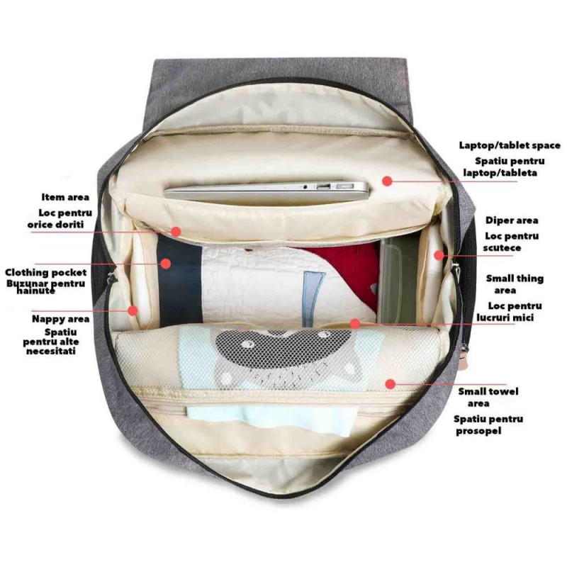| Caracteristici cheie | 2 buzunare pentru sticle, Bretele reglabile, Compartiment principal la interior si un compartiment exterior, ambele cu o inchidere cu fermoar, Material impermeabil, geanta bebelusi; geanta bebelusului; geanta pentru bebelusi; geanta bebe carucior; geanta multifunctionala bebe; geanta mama si bebe; geanta carut bebe;, geanta de carucior, geanta maternitate, geanta rucsac bebelusi; rucsac multifunctional bebelusi; geanta organizator bebe; geanta bebe pampers; geanta accesorii bebe; geanta scutece bebe; geanta pentru nou nascuti, mommy bag, rucsac maternitate; rucsac mamici; genti spital pentru mamici |