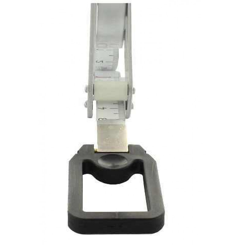 Cadrul triunghiular din aluminiu cu un design drept este din metal usor, anodizat, si are un maner negru din plastic, rezistent la impact, cu manivela din metal placat cu nichel. Manivela este pliabila in trei pozitii si este utilizata in stare inchisa pe post de oprire banda. Inelul de tragere este fabricat din plastic rezistent si este prevazut cu doi markeri pentru masuratori cu fir de plumb.
