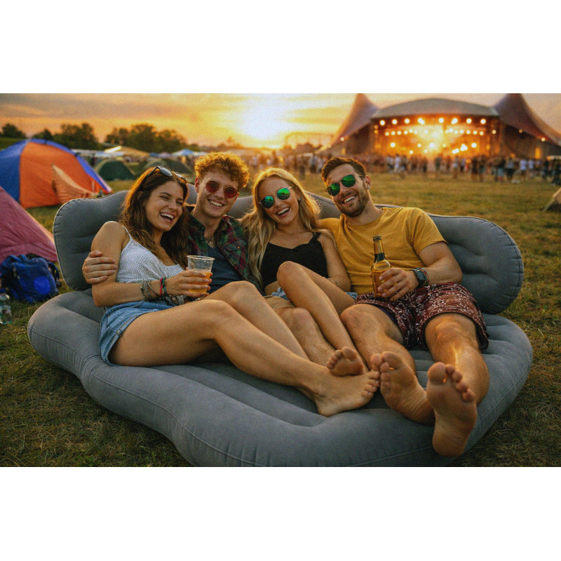 Continut pachet: 2 perne 34x22x11 cm, 2 suporturi ovale 42x32 cm, perna lunga 76x34x15 cm, laterala 112x30x15 cm, pompa auto, kit reparatie, geanta depozitare