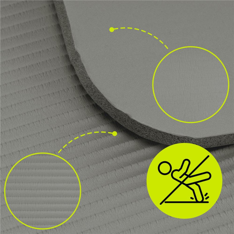 Scurta descriere: Saltea fitness realizata din NBR, ideala pentru exercitii de intretinere, yoga si stretching. Grosimea de 1 cm ofera echilibru intre stabilitate si confort, iar suprafata antiderapanta ajuta la mentinerea pozitiei corecte in timpul antrenamentelor. Include curea elastica reglabila pentru transport facil.