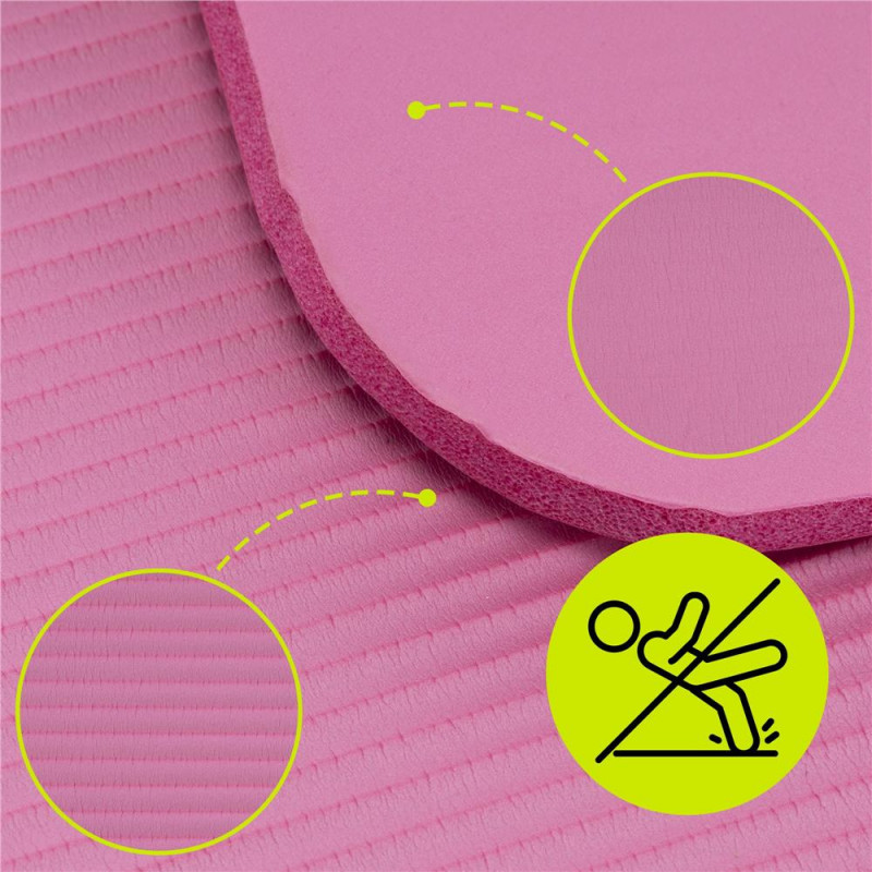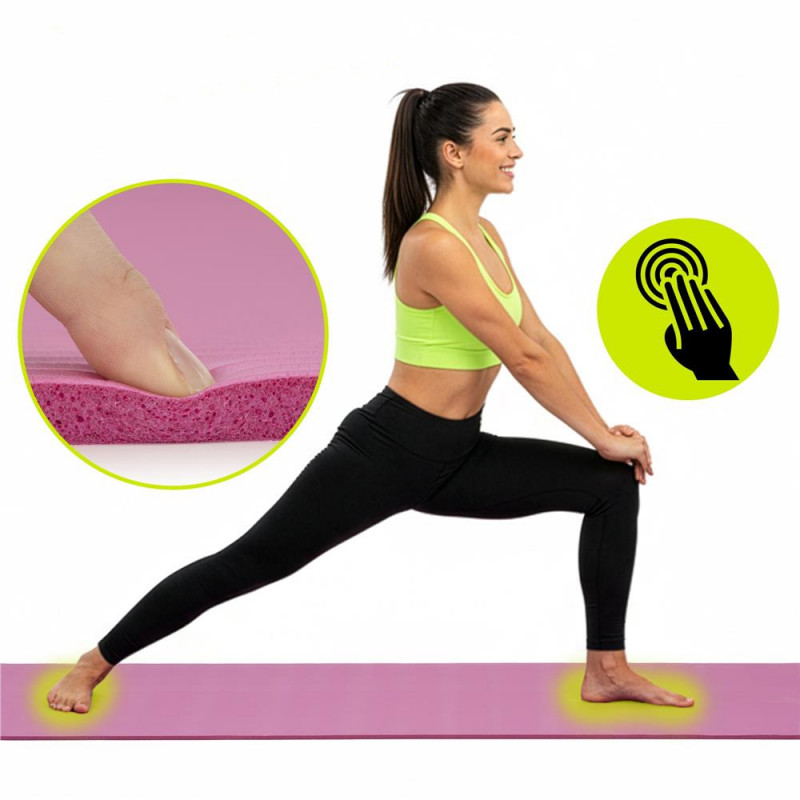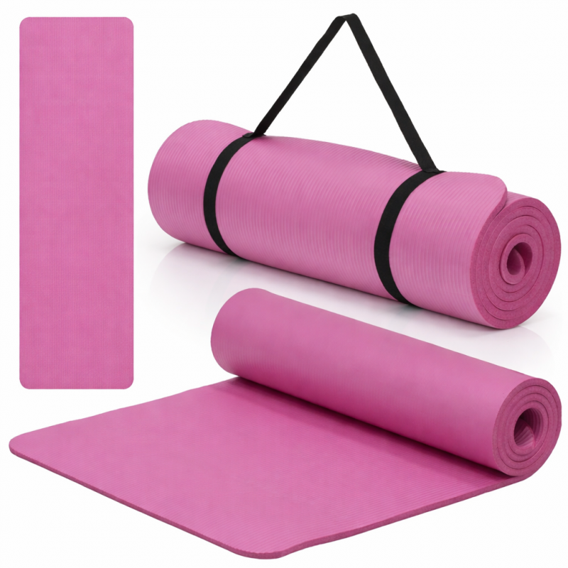 Scurta descriere: Saltea fitness realizata din NBR, potrivita pentru antrenamente usoare si medii. Ofera stabilitate buna pe podea si un nivel de confort adecvat pentru exercitii de intretinere, yoga sau pilates. Include curea elastica reglabila pentru transport facil.