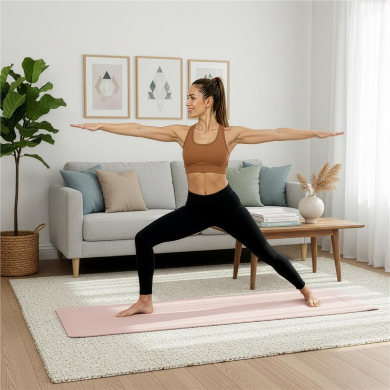 Scurta descriere: Saltea fitness realizata din TPE compact, cu structura densa si stabila. Ofera sustinere buna in timpul exercitiilor si aderenta crescuta pe podea. Designul subtire permite rulare usoara, iar cureaua reglabila inclusa faciliteaza transportul zilnic.