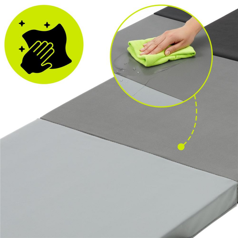Scurta descriere Saltea fitness pliabila in 3 segmente, ideala pentru exercitii la sol, stretching, yoga sau antrenamente functionale. Spuma EPE ofera confort si sustinere optima, iar suprafata din PVC este rezistenta si usor de curatat. Se pliaza rapid si este prevazuta cu maner pentru transport facil.