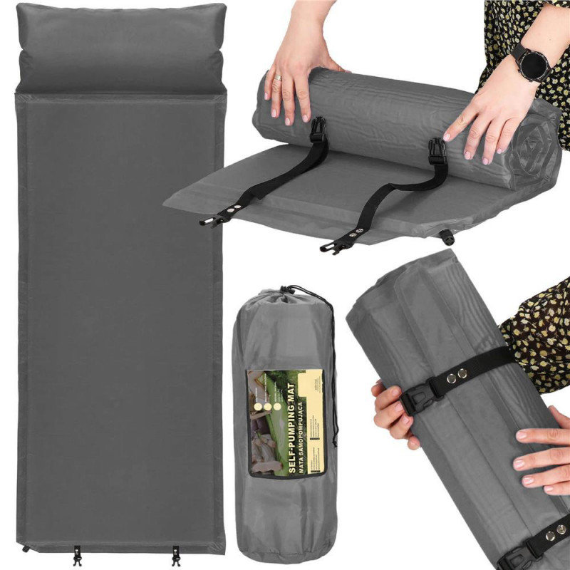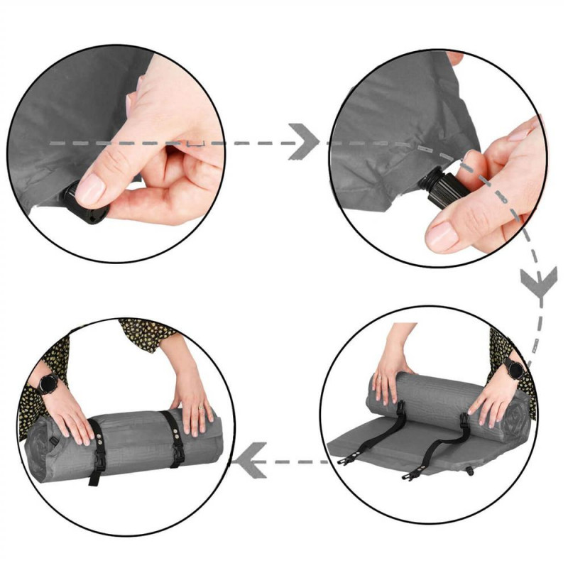 AVANTAJE ALE SALTELEI:Doar desurubati supapa si salteaua va incepe sa se pompeze singura Usor de desfasurat si pliat Il poti desface in 4 pasi simpli si il poti plia in 3 Greutate redusa, confort ridicat Curelele elastice mentin salteaua in pozitie atunci cand sunt pliate Usor de curatat Transport usor Utilizarea acestuia nu necesita utilizarea altor produse (exemplu pompa de umflare)OPERAREA RAPIDA SI SIMPLAPuteti desface covorasul in patru pasi simpli, doar desfaceti-l si indreptati-l, apoi desurubati supapa si asteptati pana cand ajunge la dimensiunile dorite. Pentru un plus de confort, puteti umfla suplimentar salteaua cu gura, dupa aceste activitati inchidem supapa si o folosim cu placere.Dupa ce nu mai aveti nevoie de saltea, desfaceti surubul supapei si rulati lent salteaua astfel incat sa se elimine tot aerul. Apoi fixati-o cu curelele incluse si e gata pentru transport.USOR DE CURATAT, USOR DE INGRIJITTesatura din poliester folosita este in sine foarte rezistenta la pete. Daca trebuie sa curatati produsul, stergeti-l usor cu o carpa umeda din microfibra. Nu uitati sa uscati bine covorasul intr-o zona umbrita inainte de a-l rula din nou.Sa nu uiti asta:Prima data cand covorasul este umflat poate dura mai mult decat dureaza autoumflarea in mod normal.Pentru un confort suplimentar, sau pana cand ajungeti la dimensiunile depline, este recomandat sa umflati de cateva ori si cu gura.