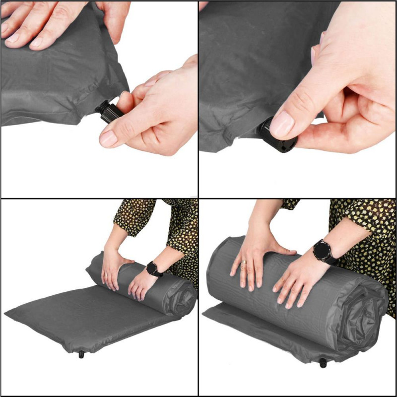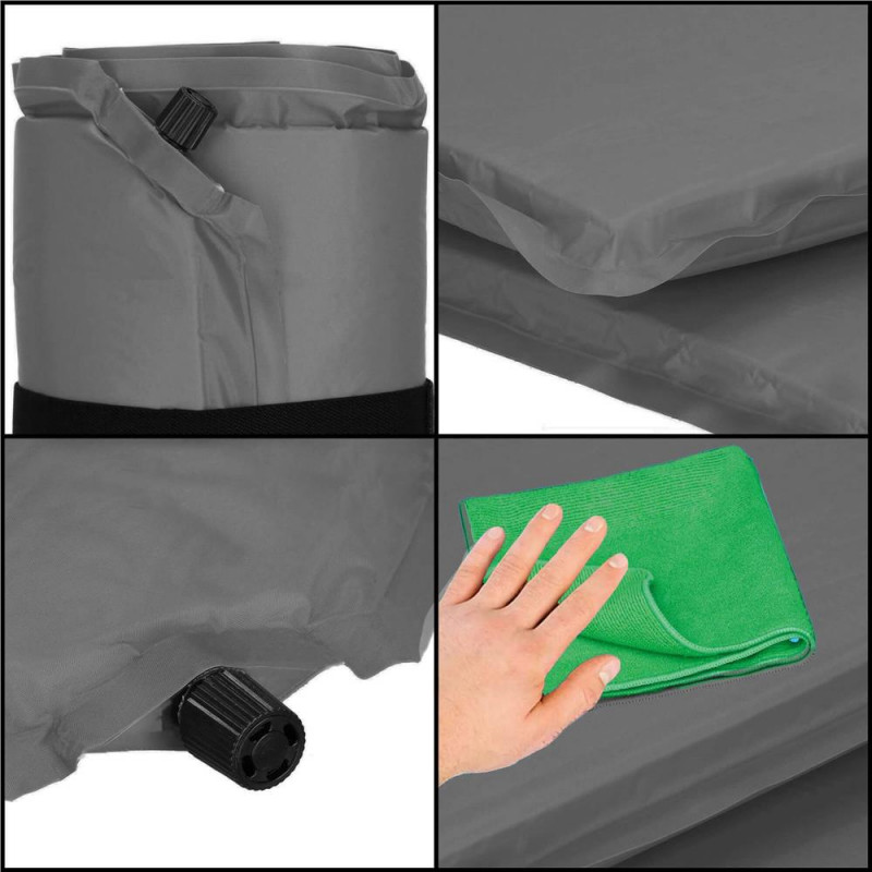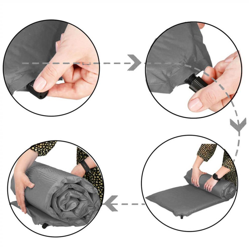 AVANTAJE ALE SALTELEI:Doar desurubati supapa si salteaua va incepe sa se pompeze singura Usor de desfasurat si pliat Il poti desface in 4 pasi simpli si il poti plia in 3 Greutate redusa, confort ridicat Curelele elastice mentin salteaua in pozitie atunci cand sunt pliate Usor de curatat Transport usor Utilizarea acestuia nu necesita utilizarea altor produse (exemplu pompa de umflare) OPERAREA RAPIDA SI SIMPLAPuteti desface covorasul in patru pasi simpli, doar desfaceti-l si indreptati-l, apoi desurubati supapa si asteptati pana cand ajunge la dimensiunile dorite. Pentru un plus de confort, puteti umfla suplimentar salteaua cu gura, dupa aceste activitati inchidem supapa si o folosim cu placere.Dupa ce nu mai aveti nevoie de saltea, desfaceti surubul supapei si rulati lent salteaua astfel incat sa se elimine tot aerul. Apoi fixati-o cu curelele incluse si e gata pentru transport.USOR DE CURATAT, USOR DE INGRIJITTesatura din poliester folosita este in sine foarte rezistenta la pete. Daca trebuie sa curatati produsul, stergeti-l usor cu o carpa umeda din microfibra. Nu uitati sa uscati bine covorasul intr-o zona umbrita inainte de a-l rula din nou.Sa nu uiti asta:Prima data cand covorasul este umflat poate dura mai mult decat dureaza autoumflarea in mod normal.Pentru un confort suplimentar, sau pana cand ajungeti la dimensiunile depline, este recomandat sa umflati de cateva ori si cu gura.
