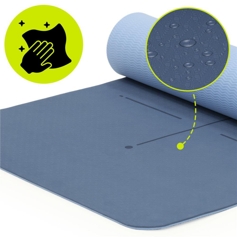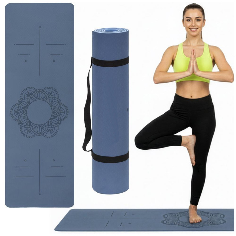Scurta descriere: Saltea fitness fabricata din TPE compact, conceputa pentru stabilitate si durabilitate. Structura densa ofera sustinere buna in timpul exercitiilor, iar suprafata antiderapanta cu textura ajuta la mentinerea pozitiei corecte. Designul subtire permite rulare usoara si transport facil cu ajutorul curelei incluse.