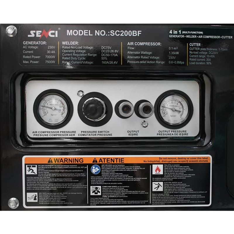 Multifunctional Senci SC200BF 4 in 1 - Generator 7.5kw 230V, aparat sudura 50-170A, plasma 10-40A, compresor 8 bar