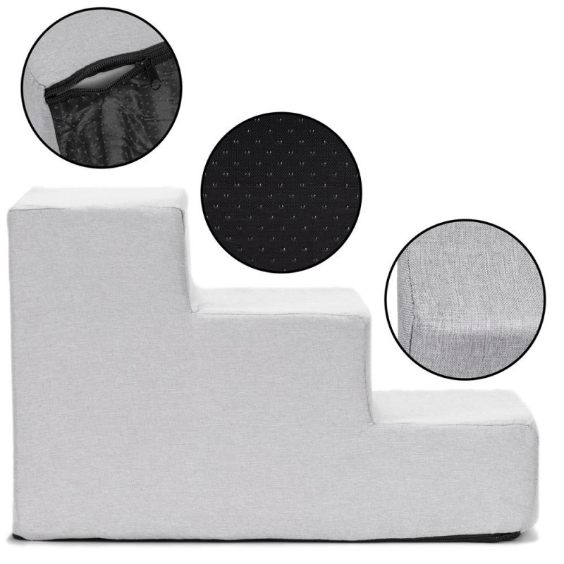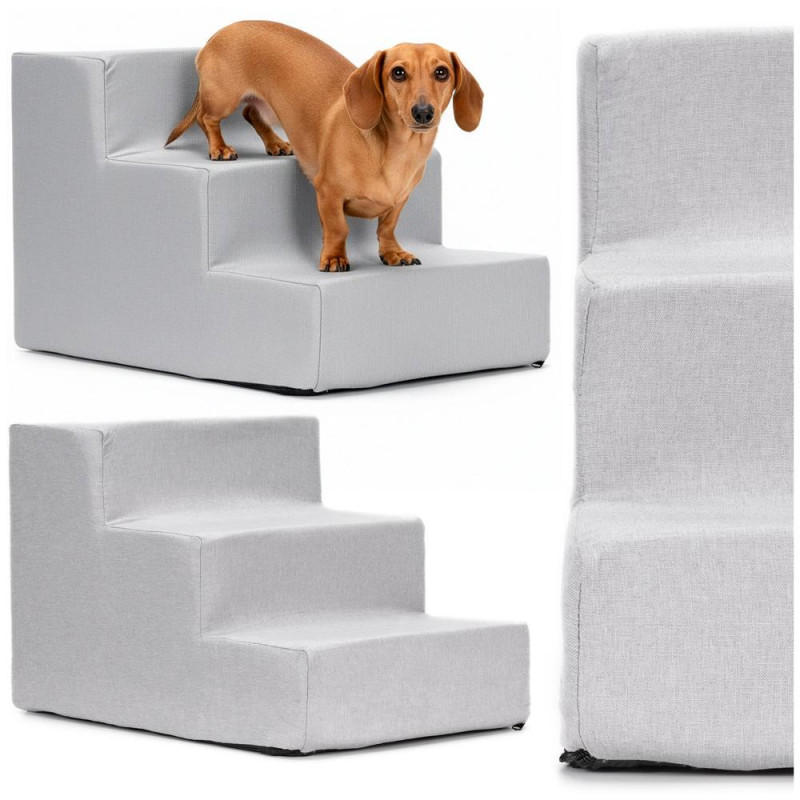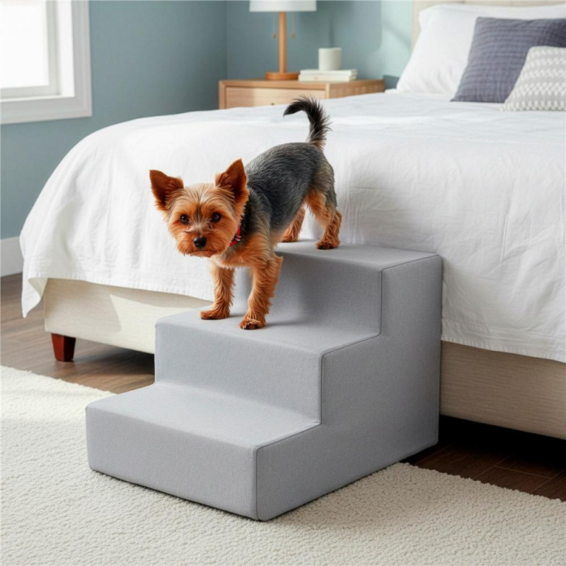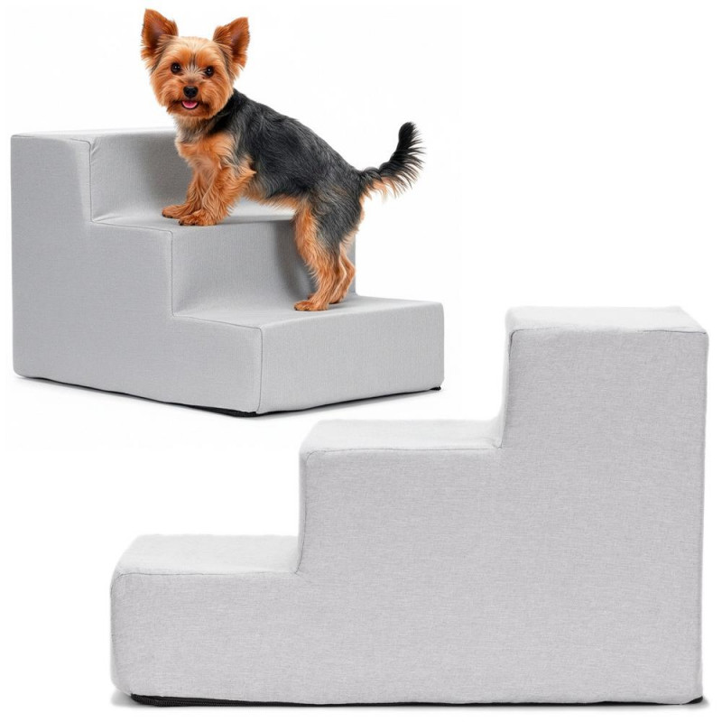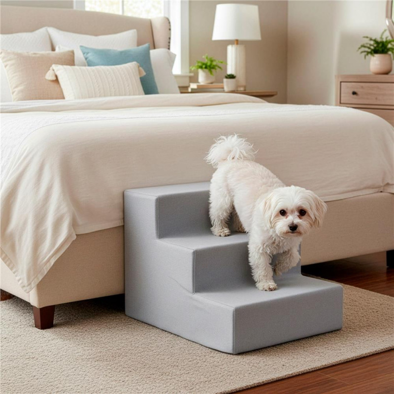 Scurta descriere: Scari practice pentru animale de companie, concepute pentru a facilita accesul pe canapea sau pat. Structura din spuma de inalta densitate ofera stabilitate, iar husa textila detasabila este usor de intretinut. Designul compact si baza antiderapanta asigura utilizare sigura in orice incapere.