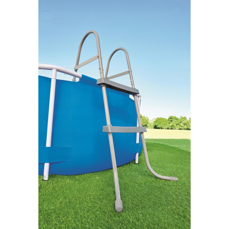 Scara pentru piscina cu 2 trepte Flowclear, 84 cm Aceasta scara Flowclear pentru piscina de la Bestway, proiectata pentru piscine supraterane, va ajuta inotatorii sa intre si sa iasa din piscina in siguranta si cu usurinta. Scara pentru piscina cu 2 trepte dispune de un cadru robust din metal rezistent la rugina. Treptele antiderapante din plastic durabil sunt ferm atasate la cadru, oferind o cale sigura de intrare sau iesire pentru inotatori. In plus, scara dispune si de 2 manere solide.Scara de siguranta pentru piscina este adecvata pentru piscinele supraterane cu o inaltime maxima de 84 cm. Este usor de asamblat.