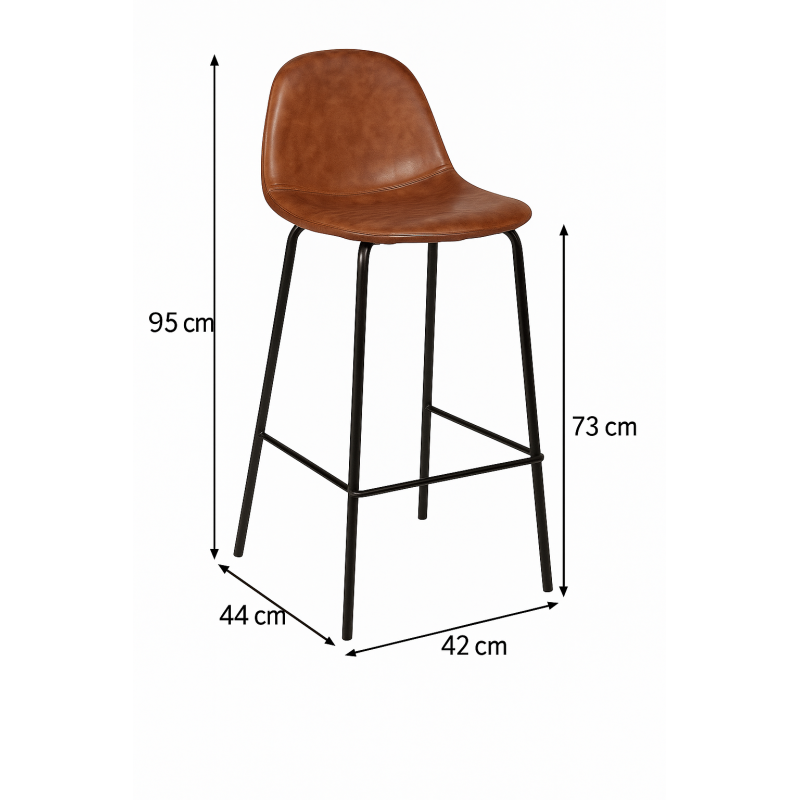 Scurta descriere: Scaunul de bar Atmosphera Vladi imbina structura din lemn stratificat cu picioarele metalice si sezutul cu aspect de piele, intr-un design retro modern. Ideal pentru amenajarea unui spatiu de dining in stil industrial sau contemporan.