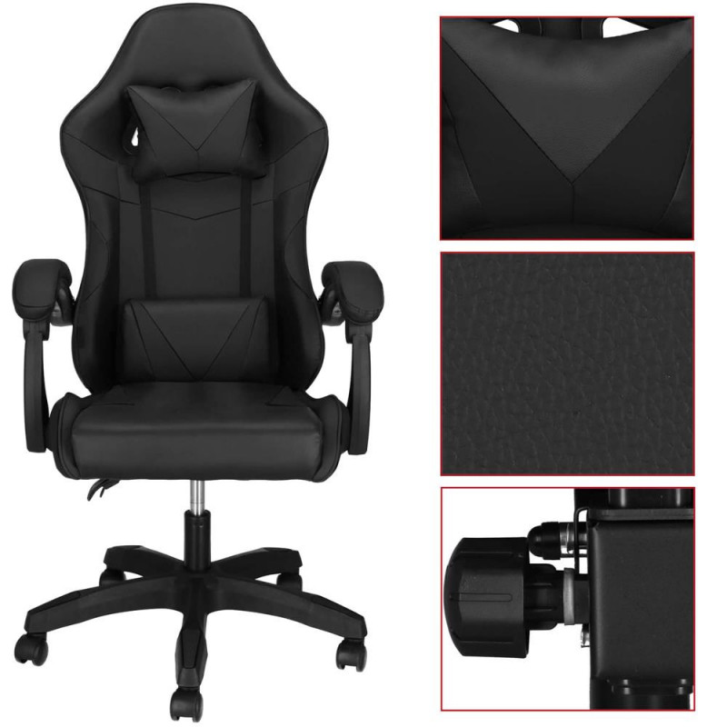 Scurta descriere Scaun ergonomic pentru gaming si birou, conceput pentru confort si sustinere optima in timpul lucrului sau al jocurilor. Dispune de reglaj pe inaltime, inclinare a spatarului si doua perne detasabile pentru sustinerea zonei lombare si cervicale. Baza solida cu 5 brate si role rezistente asigura mobilitate si stabilitate.