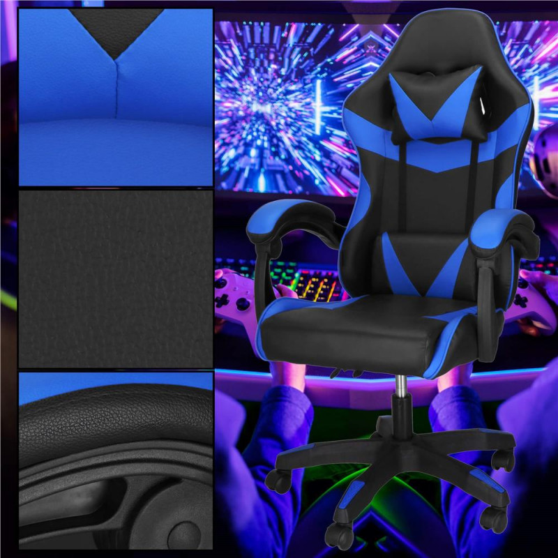 Scurta descriere Scaun ergonomic pentru gaming si birou, conceput pentru confort si sustinere optima in timpul jocurilor sau al lucrului. Dispune de reglaj pe inaltime, inclinare a spatarului si doua perne detasabile pentru zona cervicala si lombara. Baza stabila cu 5 brate si role rezistente asigura mobilitate si durabilitate.