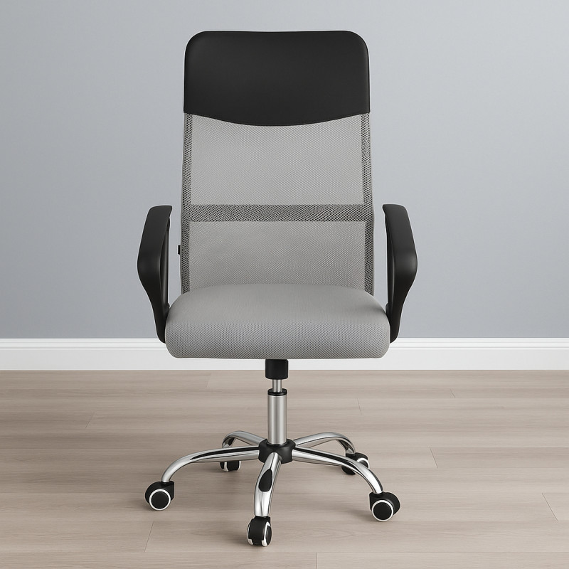 Scurta descriere Scaunul de birou ergonomic combina designul modern cu functionalitatea. Sezutul tapitat si spatarul din material tip mesh si ecopiele ofera confort si sustinere, iar reglajul pe inaltime si rotirea 360° il fac ideal pentru utilizare zilnica acasa sau la birou.
