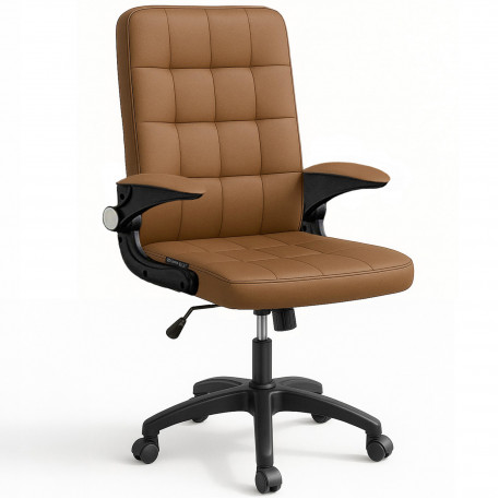 Mânerele sunt rabatabile, permițând eliberarea spațiului lateral și facilitând poziționarea scaunului sub birou atunci când este necesar.