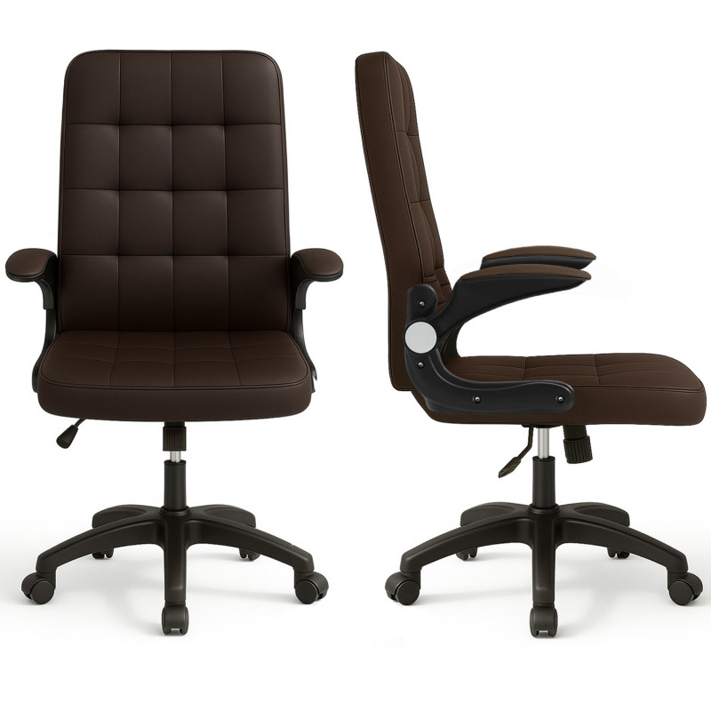 Mânerele sunt rabatabile, permițând eliberarea spațiului lateral și facilitând poziționarea scaunului sub birou atunci când este necesar.