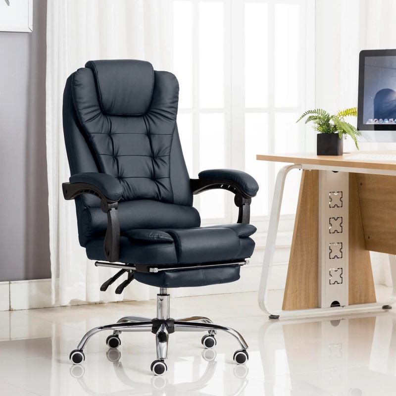 Spatarul ergonomic al acestui scaun de birou are suport lombar. Bratele distribuie greutatea uniform pentru a reduce presiunea asupra coatelor. Scaunul beneficiaza de un suport pentru picioare retractabil.