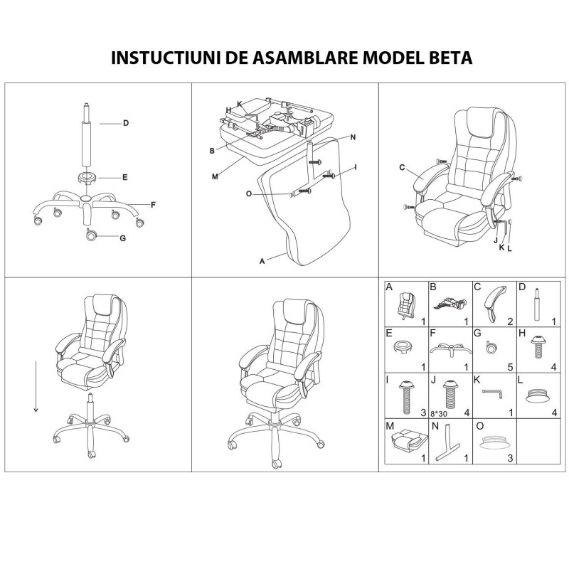 Produsul este livrat demontat, iar in interiorul cutiei se gasesc instructiunile si materialele necesare asamblarii. Pentru asamblarea produsului este nevoie de surubelnita.