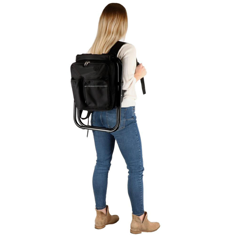 Adancime cand este desfasurat: 28 cm Scaunul de drumetie cu rucsac este o alegere excelenta pentru iubitorii de pescuit, drumetii sau camping. Solid si funky, acesta isi va face treaba si nu va ingreuna calatoriile. Dimpotriva! Este o combinatie geniala de rucsac si scaun intr-unul singur. Il puteti lua cu dvs. peste tot si puteti calatori cu el fara cel mai mic impediment.Constructia usoara, buretii moi de la maner si curelele Velcro laterale fac scaunul usor de transportat. Tesatura folosita pentru scaun este durabila si va va face sa stati confortabil. Atunci cand este desfasurat, scaunul de drumetie ramane stabil si va va permite sa va asezati confortabil. Rucsacul cu scaun de camping este foarte usor de desfasurat si, in acelasi timp, garanteaza stabilitate. Apreciat pentru capacitatea de ambalare, confort si durabilitate. Atunci cand este pliat ocupa un spatiu remarcabil de mic. Transportati taburetul purtandu-l in mana sau pe spate. Bretelele reglabile va vor permite sa ajustati rucsacul pentru a se potrivi oricarei posturi. In plus, compartimentul principal este spatios si are o functie de izolare termica. Rucsacul are, de asemenea, un buzunar cu o banda elastica, pentru a transporta convenabil, de exemplu, un termos sau o sticla, si un buzunar mai mic pentru obiecte mici. Ambele compartimente sunt prevazute cu fermoar.