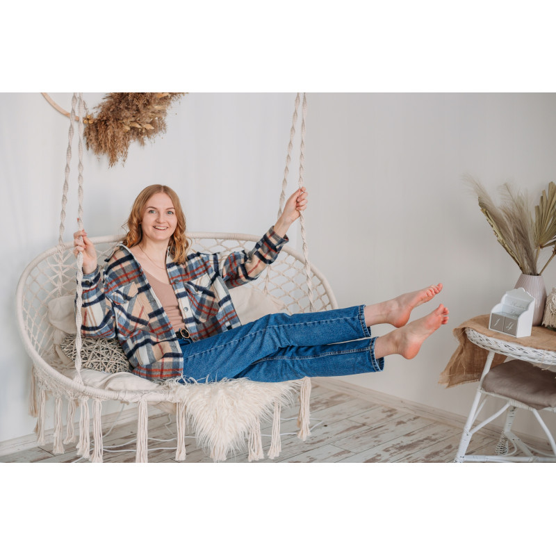 Un leagan cuib fantastic cu spatar. Cu siguranta, toata lumea se va bucura de o vacanta acasa sau in aer liber. Accesoriul perfect care va adauga farmec casei tale. Are franghii puternice, durabile. Usor de asamblat. O modalitate grozava de relaxare pentru intreaga familie. Materialele de inalta calitate asigura confortul de utilizare si durabilitatea structurii. Ce il recomanda? Fotoliu suspendat dublu - leagan Inaltime 100 cm