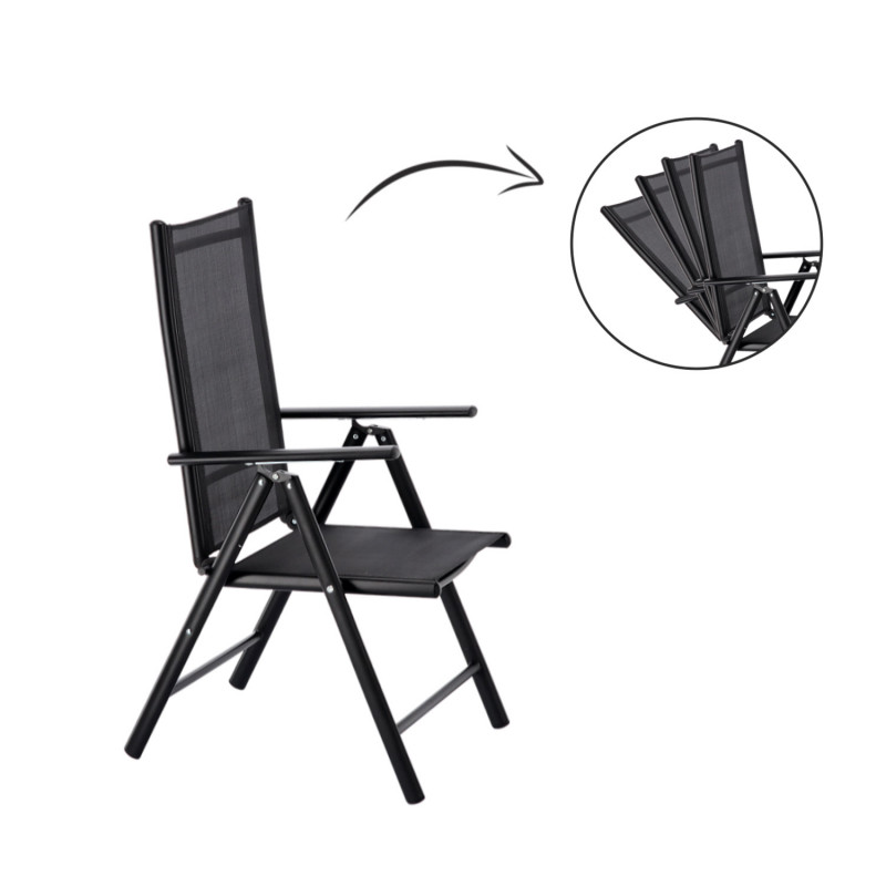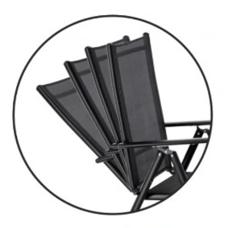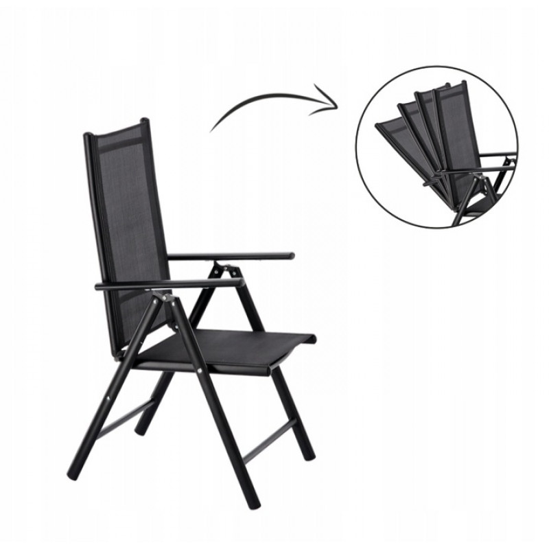 Sarcina maxima: 120 kg Scaunul de gradina are picioare practice din aluminiu. Datorita acestora, piesa de mobilier isi va mentine echilibrul complet si va oferi confort pe orice tip de suprafata. Constructia scaunului este realizata din tuburi de aluminiu acoperite cu pulbere. In combinatie cu materialul textil si aluminiul durabil, acestea se caracterizeaza prin durabilitate si calitate.