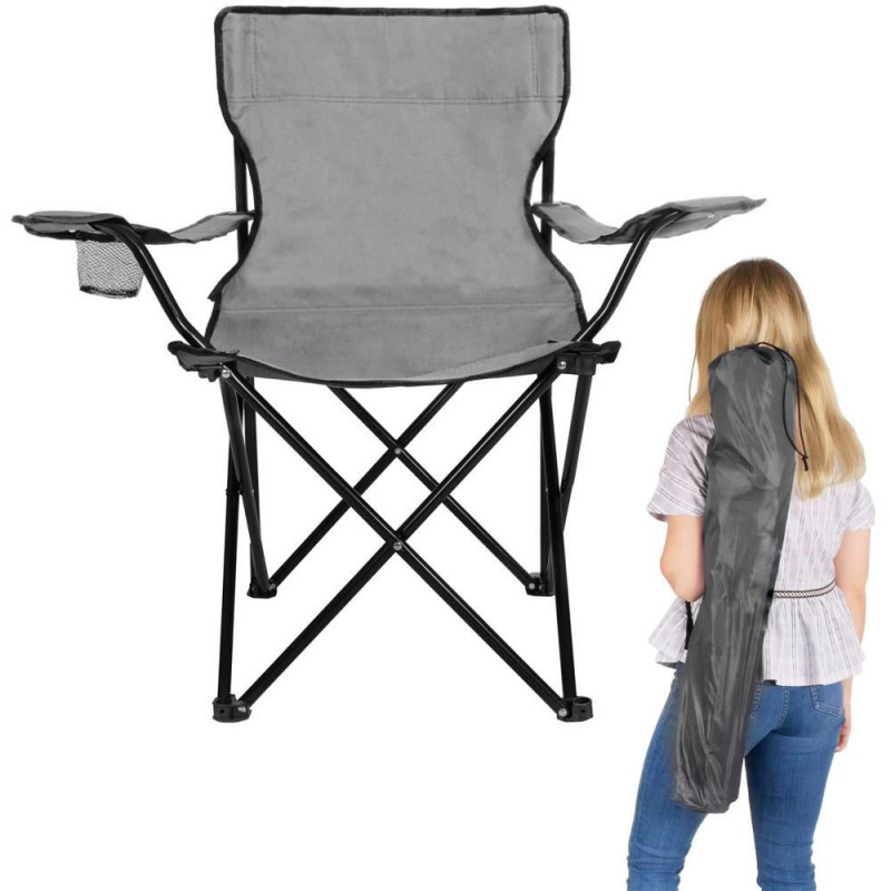 Dimensiuni compacte atunci cand este pliat Scaunul pliabil este dotat cu cotiere care vor asigura o pozitie confortabila atunci cand va relaxati. Unul dintre ele are un spatiu special destinat pentru o bautura. In plus, inaltimea cotierelor poate fi reglata independent. Materialul respirabil si rezistent la apa al scaunului de camping este cu siguranta un avantaj. Scaunul are caracteristici de siguranta pentru a se asigura ca materialul nu aluneca de pe scaun. Acest lucru asigura siguranta si confort. Picioarele scaunului au posibilitatea de a-l fixa la sol. In plus, acestea au un model antiderapant pe partea inferioara pentru a creste siguranta si stabilitatea. Scaunul se pliaza si se desface extrem de usor. Datorita capacitatii sale de a se potrivi intr-o geanta de transport la indemana, transportarea si luarea lui in camping este foarte usoara.