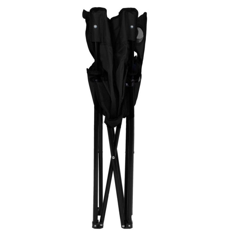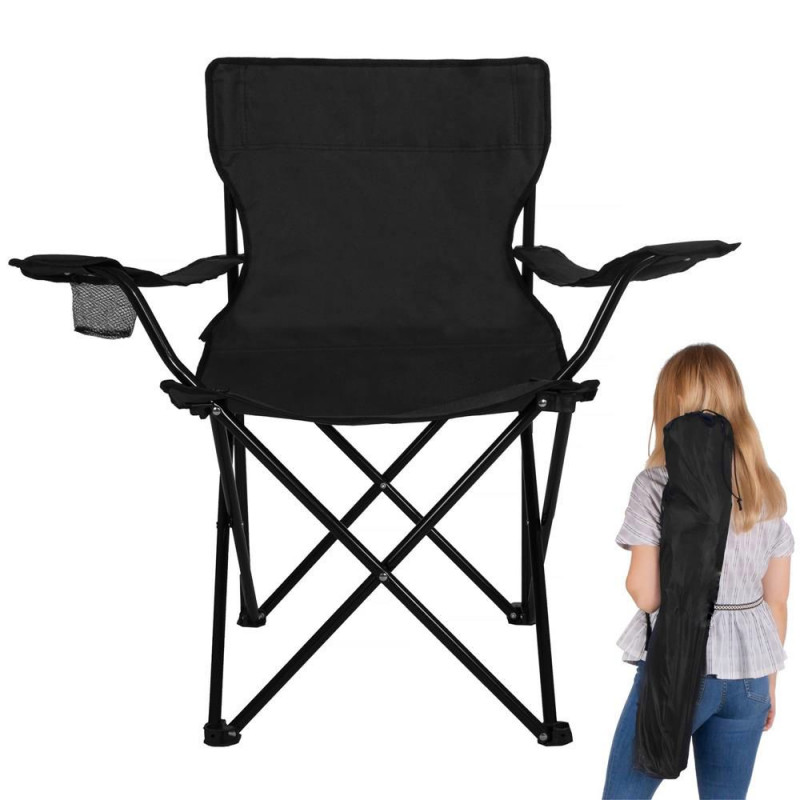 Dimensiuni compacte atunci cand este pliat Scaunul pliabil este dotat cu cotiere care vor asigura o pozitie confortabila atunci cand va relaxati. Unul dintre ele are un spatiu special destinat pentru o bautura. In plus, inaltimea cotierelor poate fi reglata independent. Materialul respirabil si rezistent la apa al scaunului de camping este cu siguranta un avantaj. Scaunul are caracteristici de siguranta pentru a se asigura ca materialul nu aluneca de pe scaun. Acest lucru asigura siguranta si confort. Picioarele scaunului au posibilitatea de a-l fixa la sol. In plus, acestea au un model antiderapant pe partea inferioara pentru a creste siguranta si stabilitatea. Scaunul se pliaza si se desface extrem de usor. Datorita capacitatii sale de a se potrivi intr-o geanta de transport la indemana, transportarea si luarea lui in camping este foarte usoara.