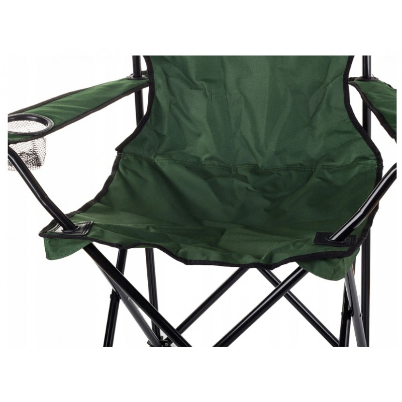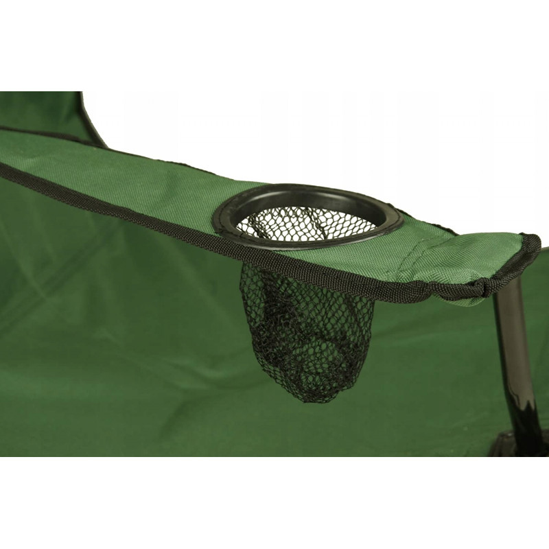 Scaunul pliabil cu cotiere este potrivit nu doar pentru pescari, poate fi, de asemenea, un accesoriu perfect pentru casele de vacanta, weekend-ul in camping sau gratarele din gradina. Structura este fabricata din otel acoperit cu pulbere, ceea ce ii garanteaza stabilitatea. Datorita spatarului si a celor doua cotiere, acesta ofera o senzatie de confort garantata. In cotiera din dreapta se gaseste o gaura cu plasa, excelenta pentru a pune bautura sau telefonul mobil. Deoarece acesta se poate plia, este usor de transportat si ocupa foarte putin spatiu atunci cand nu avem nevoie de el.