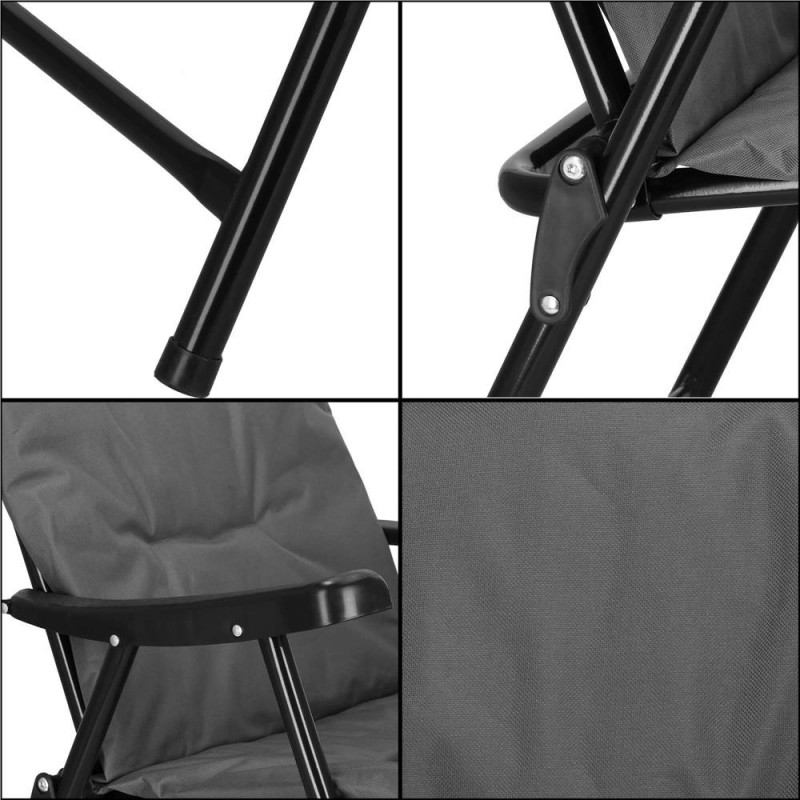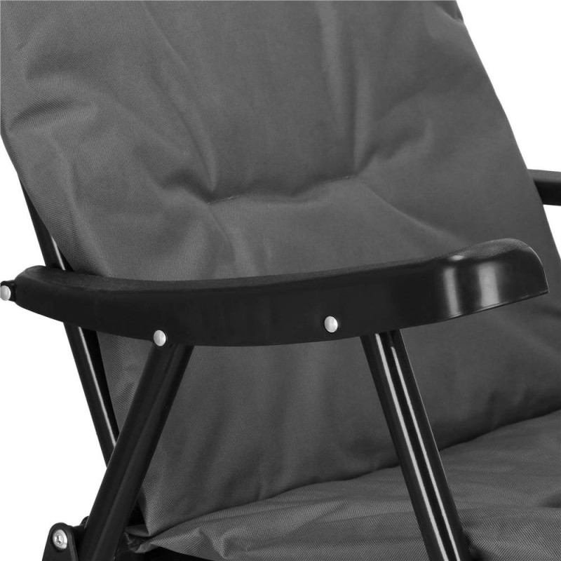 Adancime totala: 68 cm Deoarece este destinat utilizarii in aer liber, scaunul este fabricat dintr-o tesatura sintetica rezistenta. Aceasta este durabila si mai rezistenta la intemperii si deteriorari - mai mult decat fibrele naturale. In acelasi timp, se adapteaza perfect la corp si ofera un nivel ridicat de confort pentru utilizatori.Sarcina maxima a sezlongului este de pana la 100 kg. Constructia scaunului pliabil este realizata din metal acoperit cu pulbere, cu atentie la cele mai mici detalii, ceea ce sporeste semnificativ rezistenta acestuia la conditiile meteorologice. Scaunul pliabil este echipat cu cotiere, care vor asigura o pozitie de sedere confortabila. Puteti plia rapid si usor scaunul de camping si il puteti muta cu usurinta datorita constructiei sale usoare . Functia de pliere va permite sa luati mai multe scaune cu dvs. - se potrivesc cu usurinta in portbagaj si, ceea ce este la fel de important, depozitarea lor in afara sezonului necesita mult spatiu.