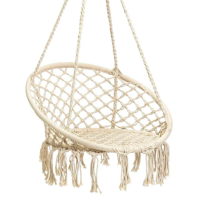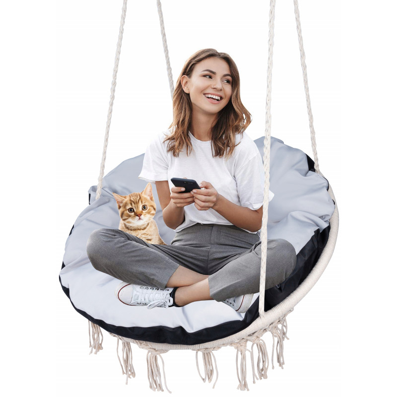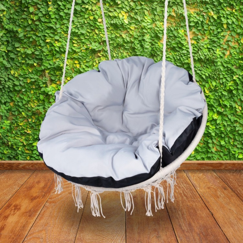 Leagan modern cu franjuri ce se potriveste perfect atat in casa cat si in gradina. Datorita pernei super confort plus de 10 cm grosime, va veti bucura de relaxarea oferita dupa o zi grea.Greutatea maxima admisa este de 150kg.Perna pentru hamac sau leagan de gradina cu umplutura moale, fabricata din materiale durabile rezistente. Tesatura de inalta calitate, captuseala durabila din bumbac de inalta calitate, confortabila si respirabila, anti-alunecare, elasticitate buna.