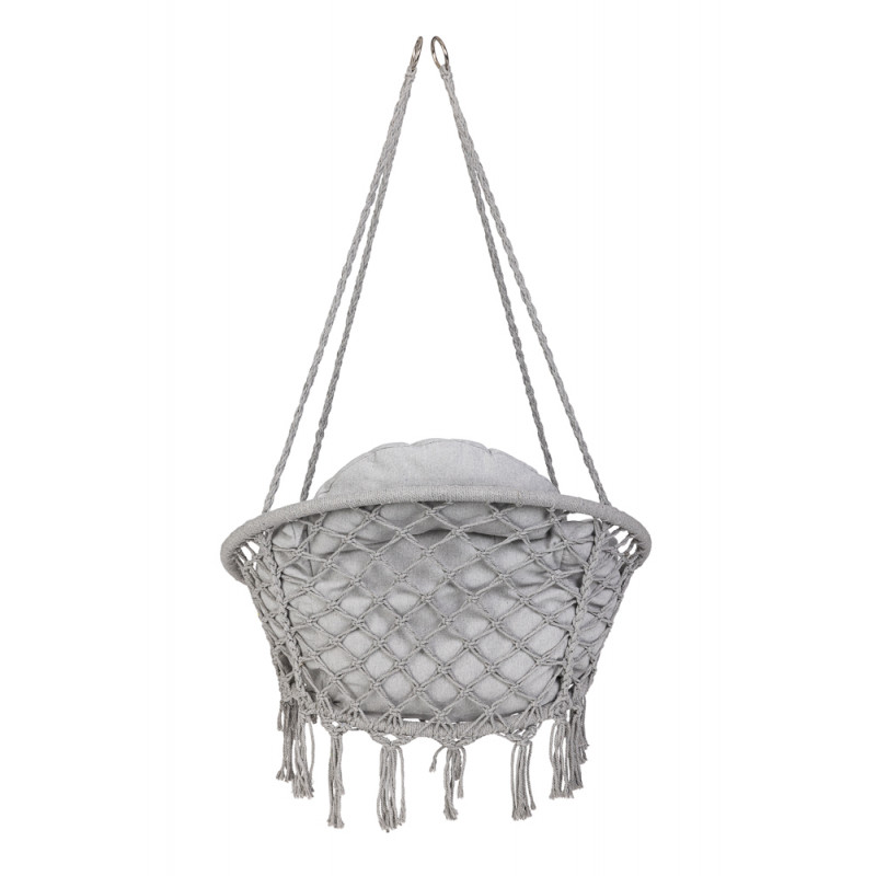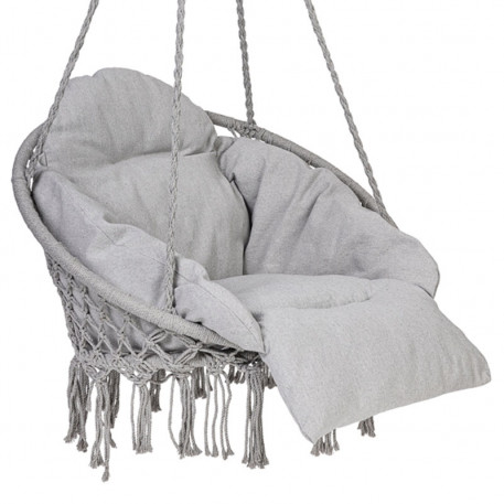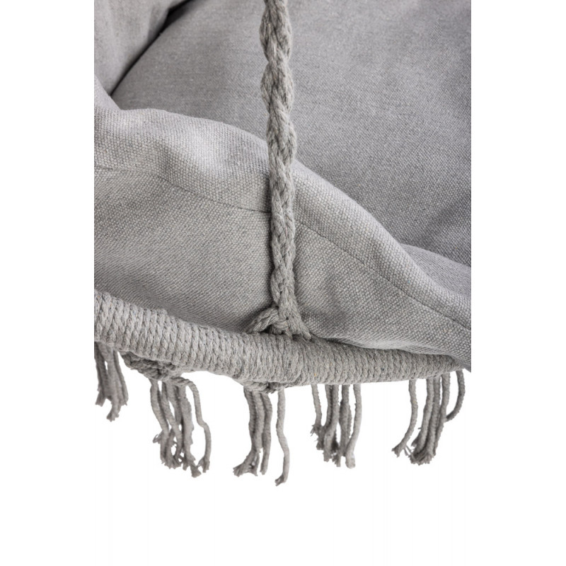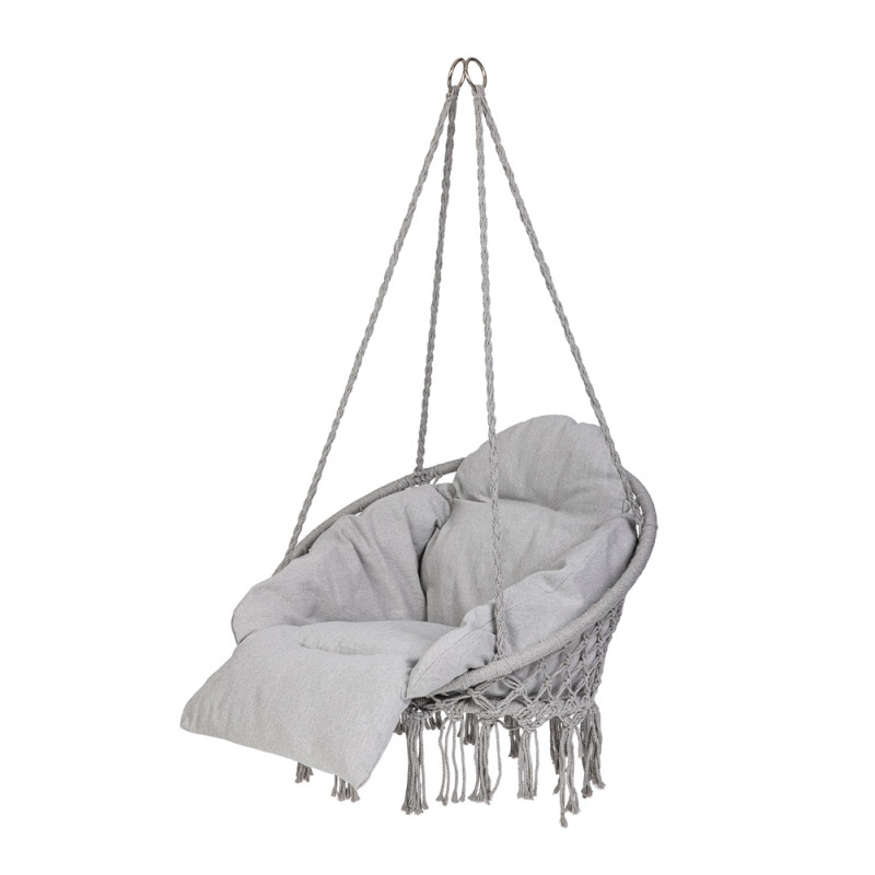 Scurta descriere: Un fotoliu suspendat elegant si confortabil, perfect pentru relaxare in gradina, pe terasa sau chiar in interiorul locuintei. Construit din materiale durabile si echipat cu o perna XXL moale, acest leagan ofera un plus de confort si stil. Se integreaza armonios in decorul natural sau interior, datorita nuantei neutre de gri.