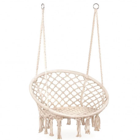Leagan modern cu franjuri ce se potriveste perfect atat in casa cat si in gradina. Datorita spatarului confortabil, va bucura de relaxarea oferita dupa o zi grea.Greutatea maxima admisa este de 150kg.
