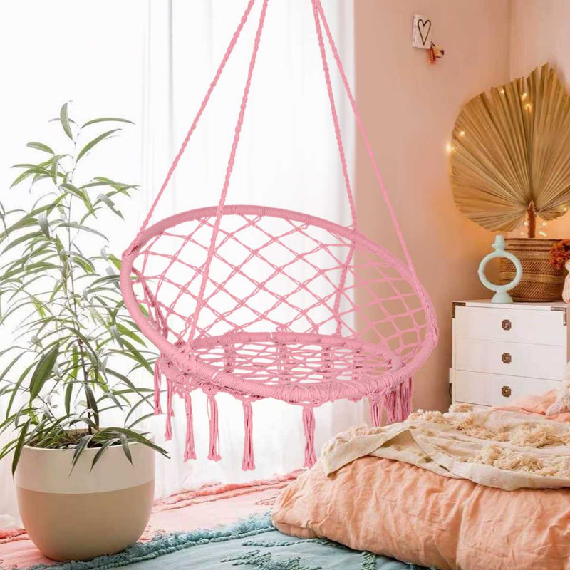 Leagan modern cu franjuri ce se potriveste perfect atat in casa cat si in gradina. Datorita spatarului confortabil, va bucura de relaxarea oferita dupa o zi grea.Greutatea maxima admisa este de 150kg.