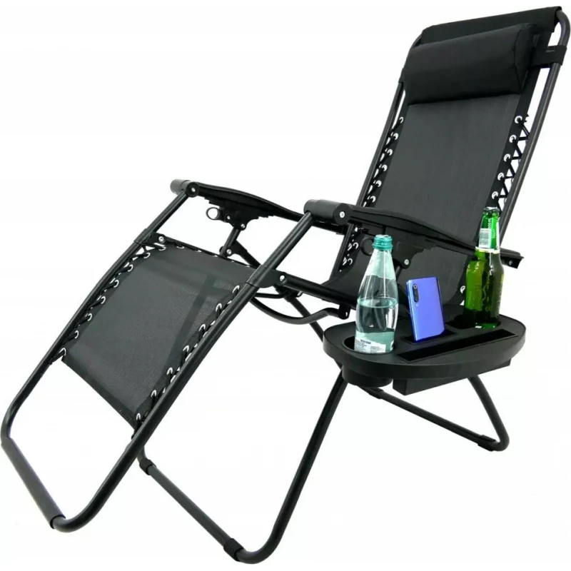 Lungimea spatarului: 78 cm Sezlongul pentru plaja este ideal de folosit atat in gradina si terase, cat si la plaja sau la padure. Perna sezlongului poate fi reglata in functie de nevoile dvs., ceea ce previne durerile de spate. Sezutul se caracterizeaza prin siguranta si confort, avand un design modern, material textil, flexibil si confortabil. Elementele din metal sunt pulverizate anti-coroziv, fiind rezistente la conditiile meteorologice (ploaie, soare). Sezlongul se livreaza impreuna cu o perna moale si confortabila care acopera toata suprafata sezlongului, plus o tetiera care poate fi mutata in orice pozitie pentru o relaxare optima. Acesta mai este prevazut cu un suport/tavita pentru bauturi, sticle, pahare, ziare, reviste sau telefon cu 4 compartimente. Cea mai importanta caracteristica a acestui sezlong o reprezinta sistemul special de reglare a pozitiei care iti ofera senzatia de plutire (zero gravitatie) pentru o relaxare completa.