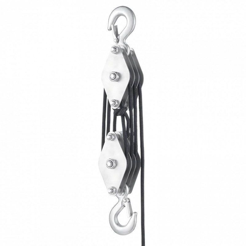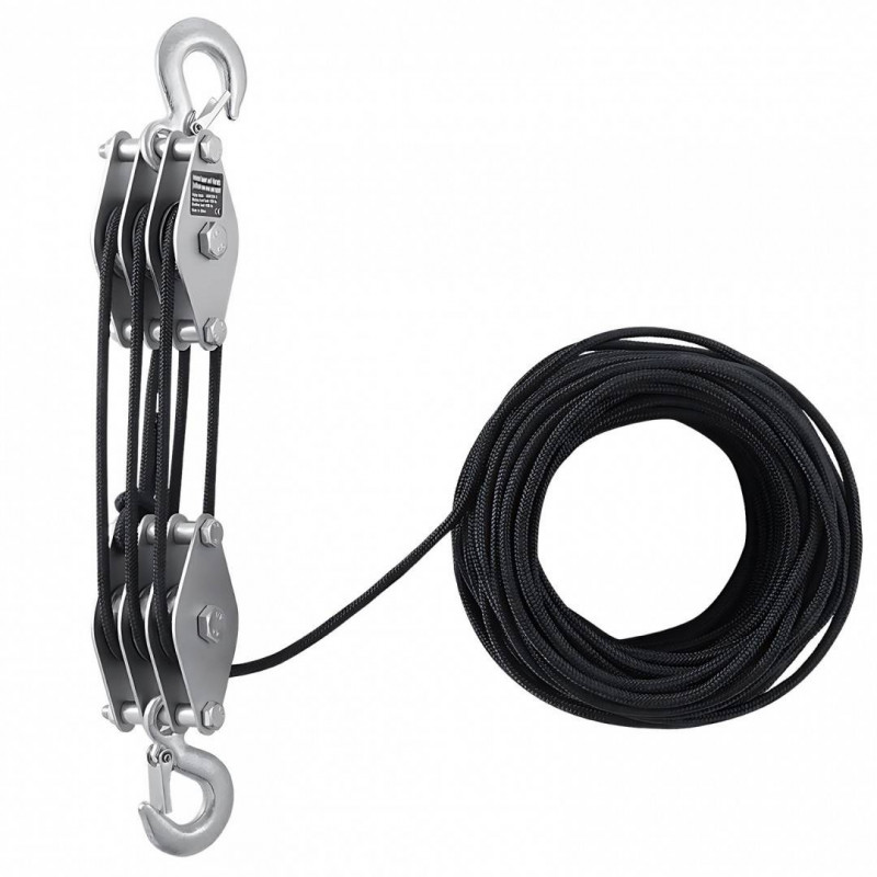 un set de trei scripete metalice si funie puternica, capabila sa ridice pana la