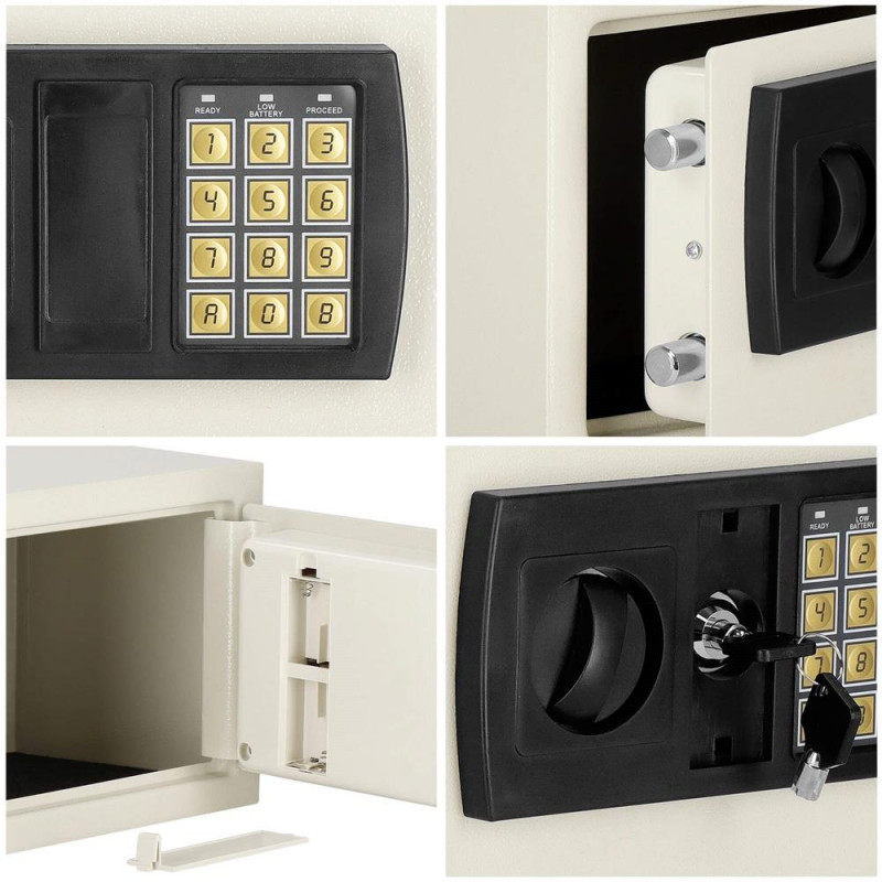 folositi placuta de pasla inclusa pentru a preveni deteriorarea obiectelor valoroase si fragile sau pentru a linisti interiorul seifului Seiful poate fi deschis cu o cheie (veti gasi 2 incluse) sau cu un cod electronic, care se codifica in conformitate cu