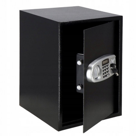 Veti primi in set stifturi de montare Seiful este prevazut cu un raft interior metalic cu o margine pentru a impiedica alunecarea obiectelor de pe raft. Puteti atasa raftul cu cele doua cleme incluse sau il puteti scoate daca aveti nevoie sa depozitati obiecte mai mari. Seiful se deschide cu ajutorul unei chei (veti gasi 2 incluse) sau a unui cod electronic codificat conform