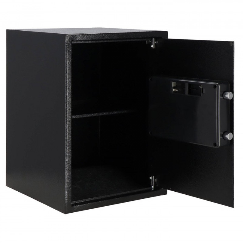 Raft extractabil in interior, posibilitate de fixare pe pereti si pe podea (dibluri incluse), covoras din pasla pentru izolarea fonica a interiorului seifului