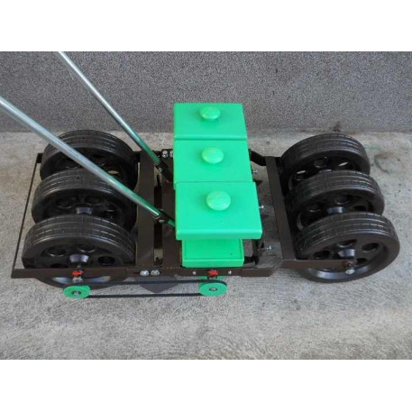 - Rotile mari din plastic sunt montate una dupa alta, antrenare a discului de distributie se face printr-un lant, lantul este antrenat de catre roata din spate