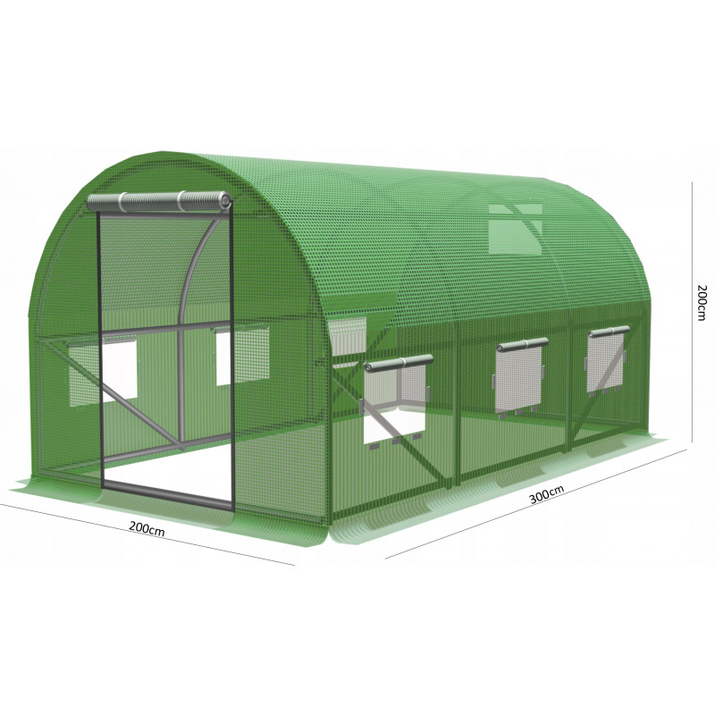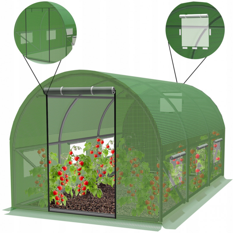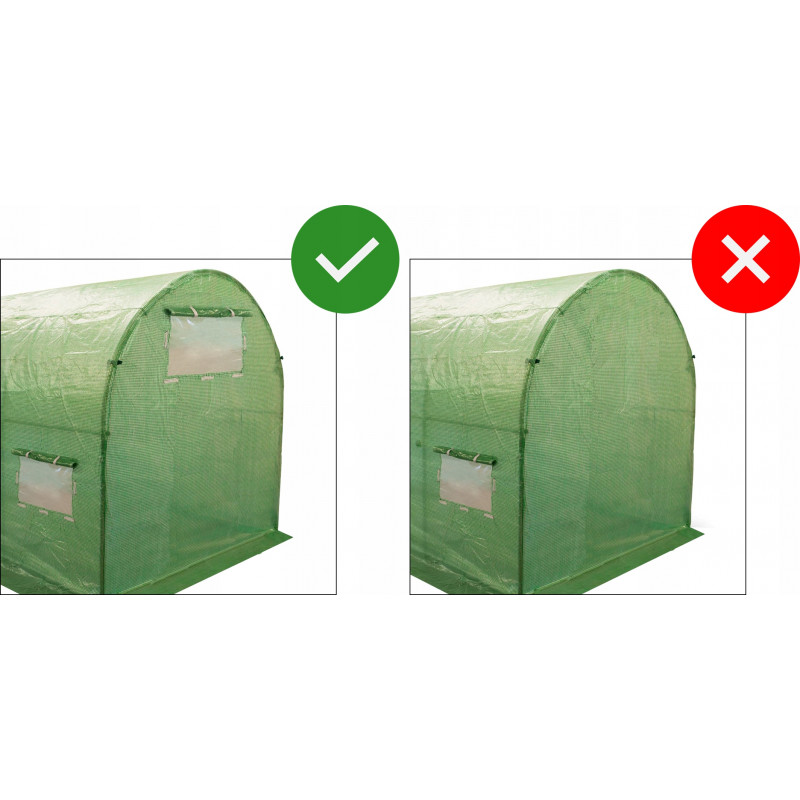 Rezistent la intemperii Iesire complet blocabila! Tunelul are o intrare complet inchisa, inclusiv pragul! In tunelurile conventionale, chiar si atunci cand sunt inchise, ramane un spatiu ingust sub usa. Aici intra melcii cei mai mari daunatori ai culturilor noastre de sera. Gulerul de pamant este sapat in jurul serei.Puteti sa inchideti bine tunelul si sa va bucurati de culturile dumneavoastra fara a folosi preparate chimice Fereastra superioara suplimentara! Tunelul este echipat cu o fereastra superioara suplimentara pe peretele din spate. Acesta asigura o ventilatie importanta. In tunelurile traditionale, temperatura devine foarte ridicata in timpul caldurii de vara, ceea ce face ca plantele, cum ar fi rosiile sau castravetii, sa se ofileasca. Acest lucru se intampla in principal in partile superioare ale plantelor.O fereastra suplimentara situata sub bolta tunelului ventileaza foarte bine interiorul serei. Flansa inferioara pentru acoperirea cu pamant Impiedica patrunderea daunatorilor nedorite si stabilizeaza structura. 2 tuburi suplimentare pentru plante cataratoare Tunelurile au o functie de suspendare a coardelor pentru plante precum rosiile, mazarea sau sparanghelul. Folie PE 140g/m² cu filtru UV4 Plasa PP verde fuzionata in pelicula de acoperire protejeaza impotriva ruperii Cadru stabil conectat prin suruburi.Zincat cu precizie cu dopuri de plastic