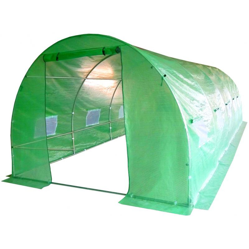 Rezistent la intemperii Iesire complet blocabila! Tunelul are o intrare complet inchisa, inclusiv pragul! In tunelurile conventionale, chiar si atunci cand sunt inchise, ramane un spatiu ingust sub usa. Aici intra melcii cei mai mari daunatori ai culturilor noastre de sera. Gulerul de pamant este sapat in jurul serei.Puteti sa inchideti bine tunelul si sa va bucurati de culturile dumneavoastra fara a folosi preparate chimice Functia suplimentara de ventilatie din tunel, care permite ca folia rulata sa fie infasurata si agatata in partea de jos, este o solutie foarte practica, mai ales in zilele fierbinti de vara. Cu aceasta functie, puteti regla fluxul de aer din interiorul tunelului, ceea ce ajuta la mentinerea temperaturii si umiditatii optime pentru plantele cultivate in interior.Ventilatia suplimentara previne supraincalzirea plantelor si mareste circulatia aerului, ceea ce poate contribui la o mai buna crestere si sanatate a plantelor. Prin urmare, este o caracteristica importanta pentru cei care cultiva plante in tuneluri, in special in conditii climatice care favorizeaza temperaturile ridicate. Flansa inferioara pentru acoperirea cu pamant Impiedica patrunderea daunatorilor nedorite si stabilizeaza structura. 2 tuburi suplimentare pentru plante cataratoare Tunelurile au o functie de suspendare a coardelor pentru plante precum rosiile, mazarea sau sparanghelul. Folie PE 140g/m² cu filtru UV4 Plasa PP verde fuzionata in pelicula de acoperire protejeaza impotriva ruperii Cadru stabil conectat prin suruburi.Zincat cu precizie cu dopuri de plastic