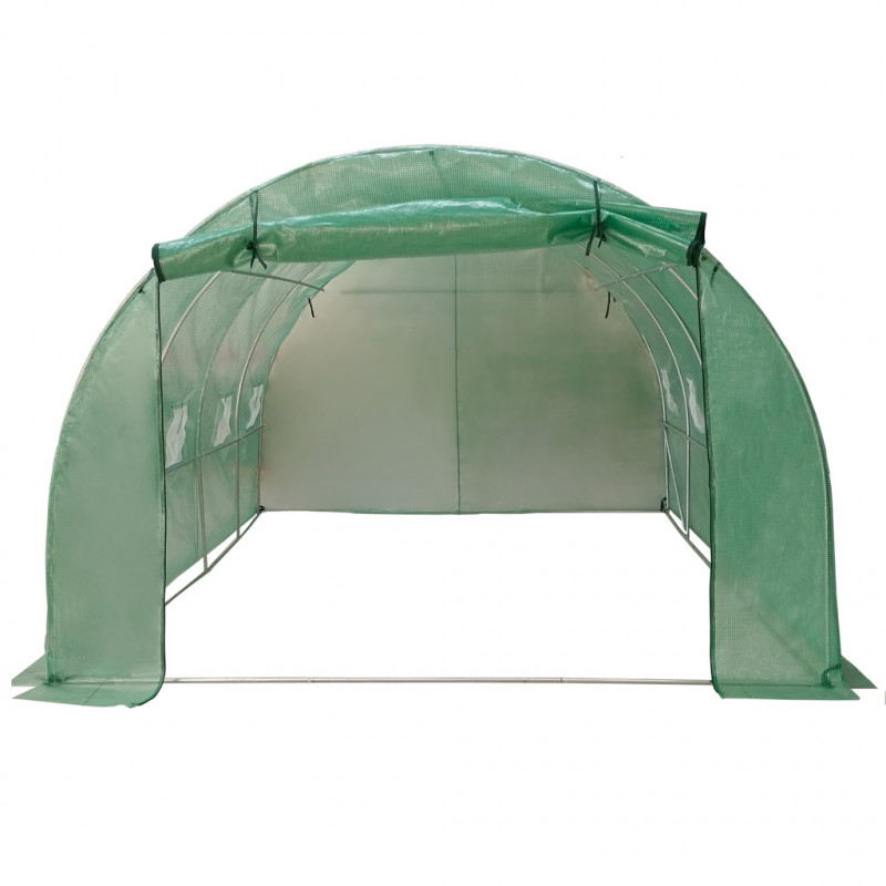 Caracteristici principale: Folie armata PE 130 g/m² pentru protectie eficienta si durabilitate Cadru solid din otel galvanizat, rezistent la coroziune 8 ferestre cu plasa anti-insecte si sistem de rulare pentru ventilatie Acces facil prin usa mare cu fermoar Ideal pentru extinderea sezonului de cultivare in gradina sau pe teren agricol
