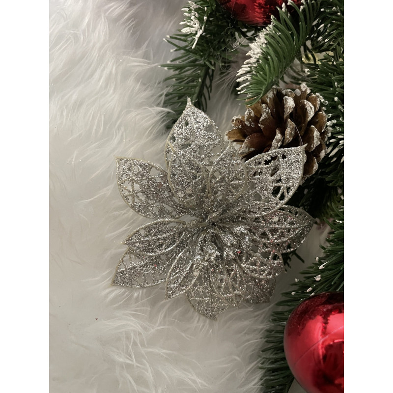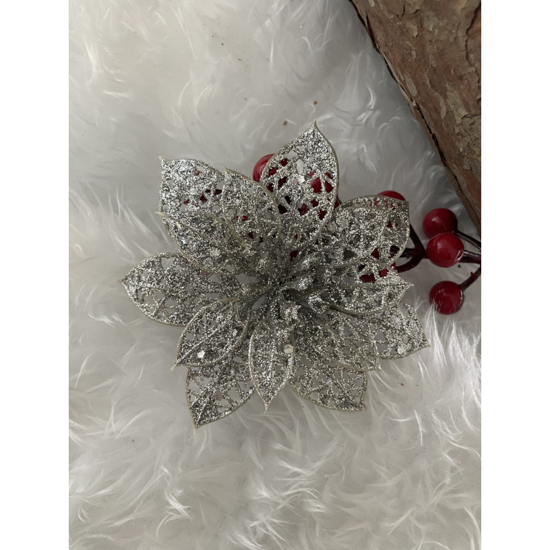 Poinsettia este cunoscuta in intreaga lume si este asociata cu Craciunul. Forma petalelor de poinsettia simbolizeaza steaua biblica a Betleemului, care a aparut adesea in casele noastre de ani de zile ca un decor unic pentru a infrumuseta sarbatoarea Craciunului In ciuda faptului ca este artificiala, poinsettia va incant familia cu farmecul sau. Arata fantastic ca decor pentru o coronita de Craciun. De asemenea, va functiona foarte bine ca floare pentru aranjamentele de masa de Craciun sau ca decorare a ghirlandei. Petalele Stelei de la Bethleem sunt atasate la o clema metalica, care poate fi prinsa rapid si usor de tesaturi si crengute, astfel incat le puteti aranja cu multa libertate. Lungimea diferita a petalelor ajurate face ca floarea mare sa fie mai vizibila si mai incantatoare. Nimeni nu va trece cu indiferenta pe langa el. Lasa-ti imaginatia sa zburde, iesi in evidenta si decoreaza-ti casa cu aceste flori fermecatoare pentru a crea decoratiuni de Craciun de neuitat si, mai ales, de neegalat!