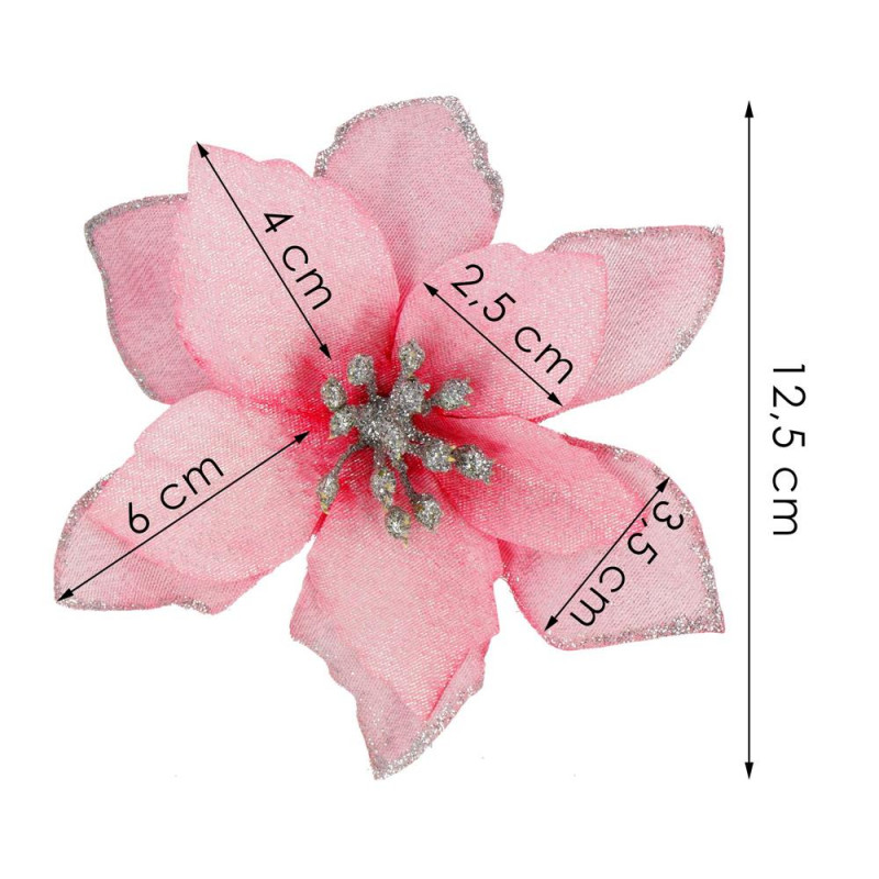 Lungimea agrafei: 4 cm Poinsettia este cunoscuta in intreaga lume si este asociata cu Craciunul. Forma petalelor de poinsettia simbolizeaza steaua biblica a Betleemului, care a aparut adesea in casele noastre de ani de zile ca un decor unic pentru a infrumuseta sarbatoarea Craciunului In ciuda faptului ca este artificiala, poinsettia va incant familia cu farmecul sau. Arata fantastic ca decor pentru o coronita de Craciun. De asemenea, va functiona foarte bine ca floare pentru aranjamentele de masa de Craciun sau ca decorare a ghirlandei. Petalele Stelei de la Bethleem sunt atasate la o clema metalica, care poate fi prinsa rapid si usor de tesaturi si crengute, astfel incat le puteti aranja cu multa libertate. Lungimea diferita a petalelor ajurate face ca floarea mare sa fie mai vizibila si mai incantatoare. Nimeni nu va trece cu indiferenta pe langa el. Lasa-ti imaginatia sa zburde, iesi in evidenta si decoreaza-ti casa cu aceste flori fermecatoare pentru a crea decoratiuni de Craciun de neuitat si, mai ales, de neegalat!